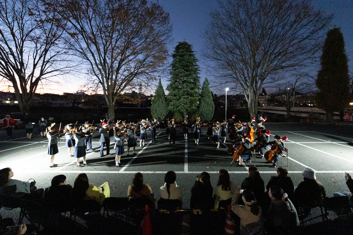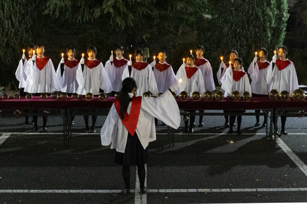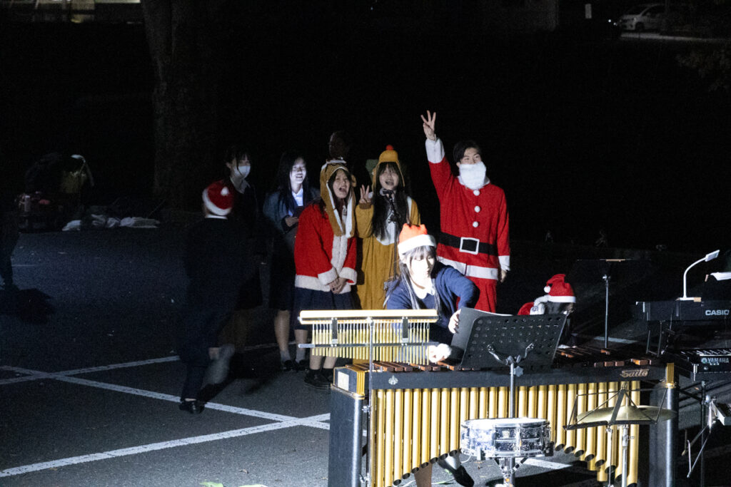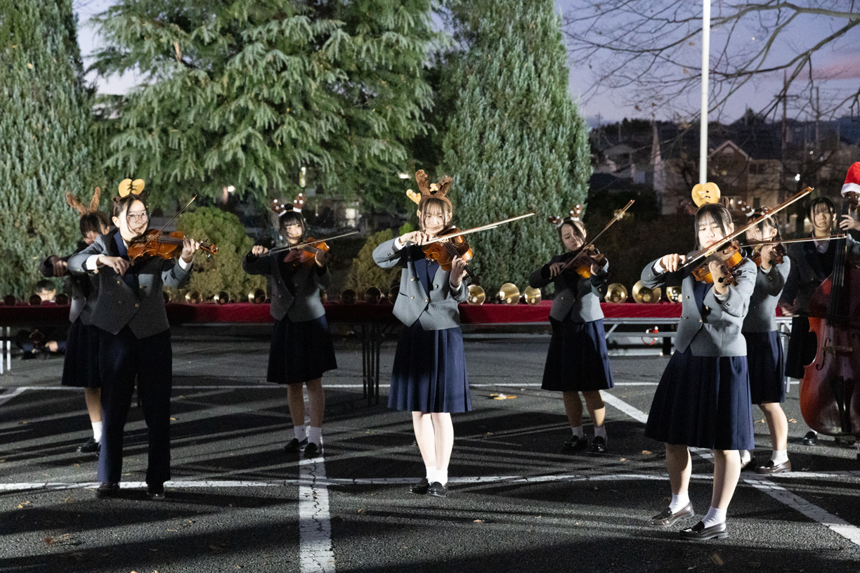 当日は実行委員、生徒会、聖歌隊、管楽アンサンブル部、弦楽団の3音楽団体によるクリスマス曲の演奏と、家庭科部制作のクッキーの配布がありました。