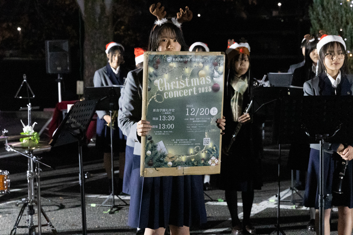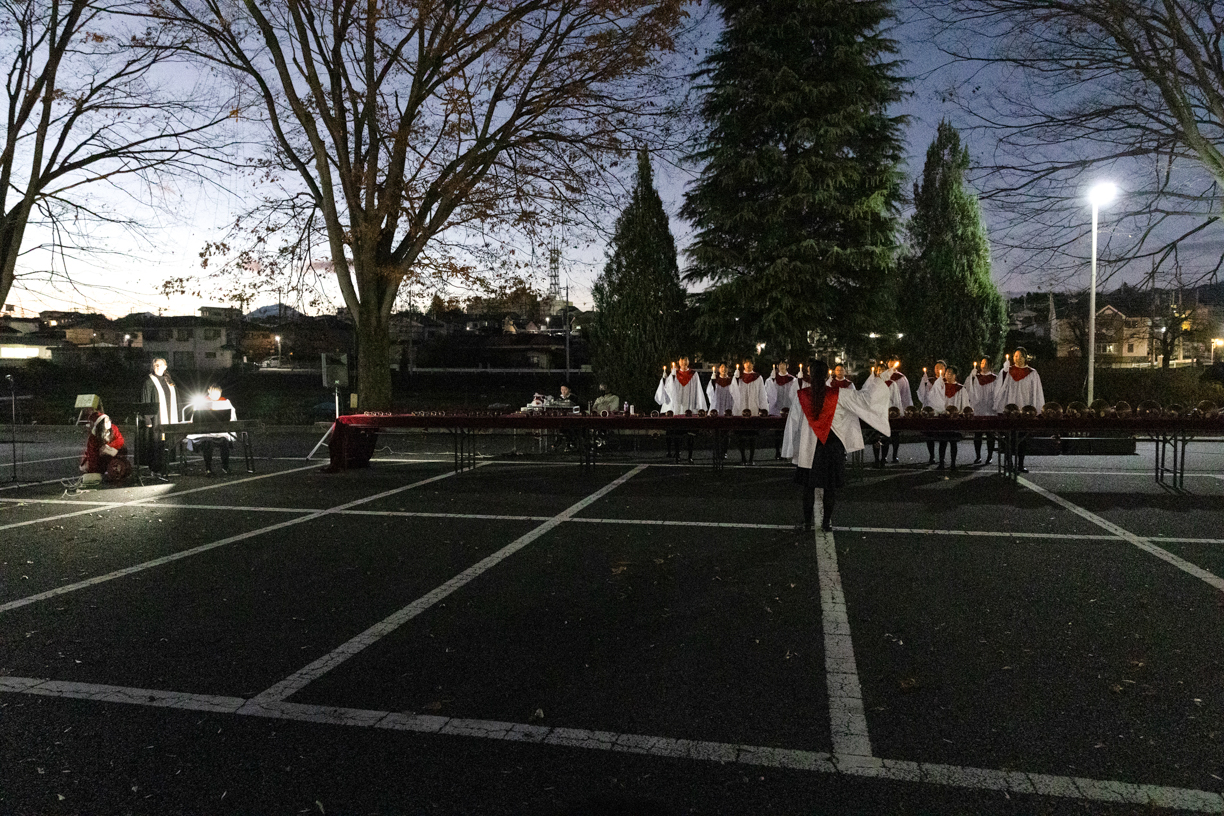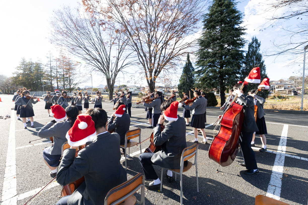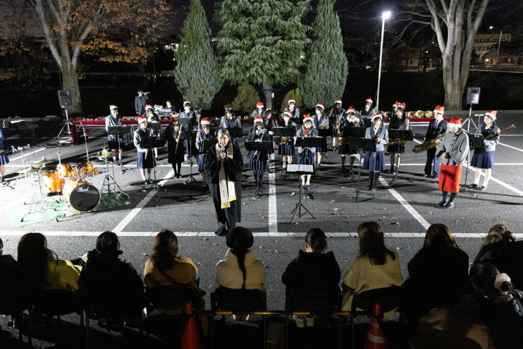 当日は実行委員、生徒会、聖歌隊、管楽アンサンブル部、弦楽団の3音楽団体によるクリスマス曲の演奏と、家庭科部制作のクッキーの配布がありました。