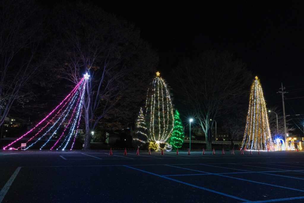 夜のイルミネーションが点った駐車場は、近隣の皆様の憩いの場にもなっています。