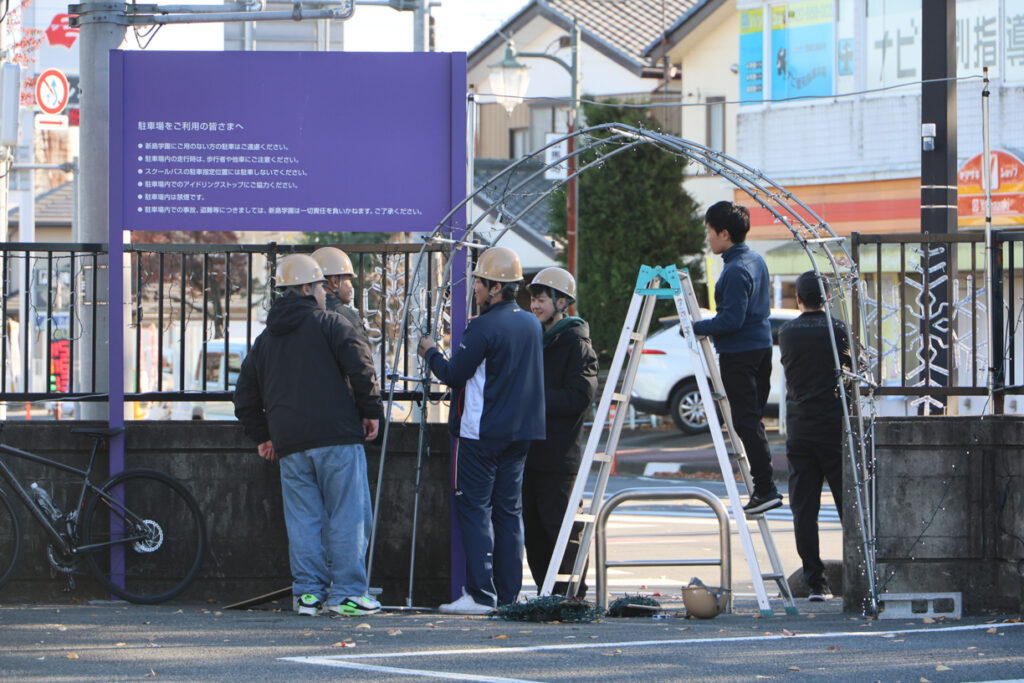 前週の21日(金)放課後と22日(土)とで、係の生徒達と顧問の先生方とで、飾り付けを行いました。