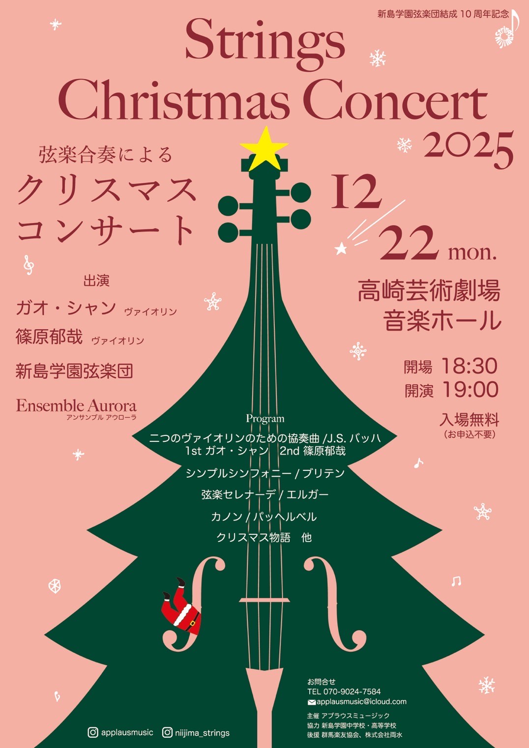 弦楽団が出演するクリスマスコンサートのご案内です。